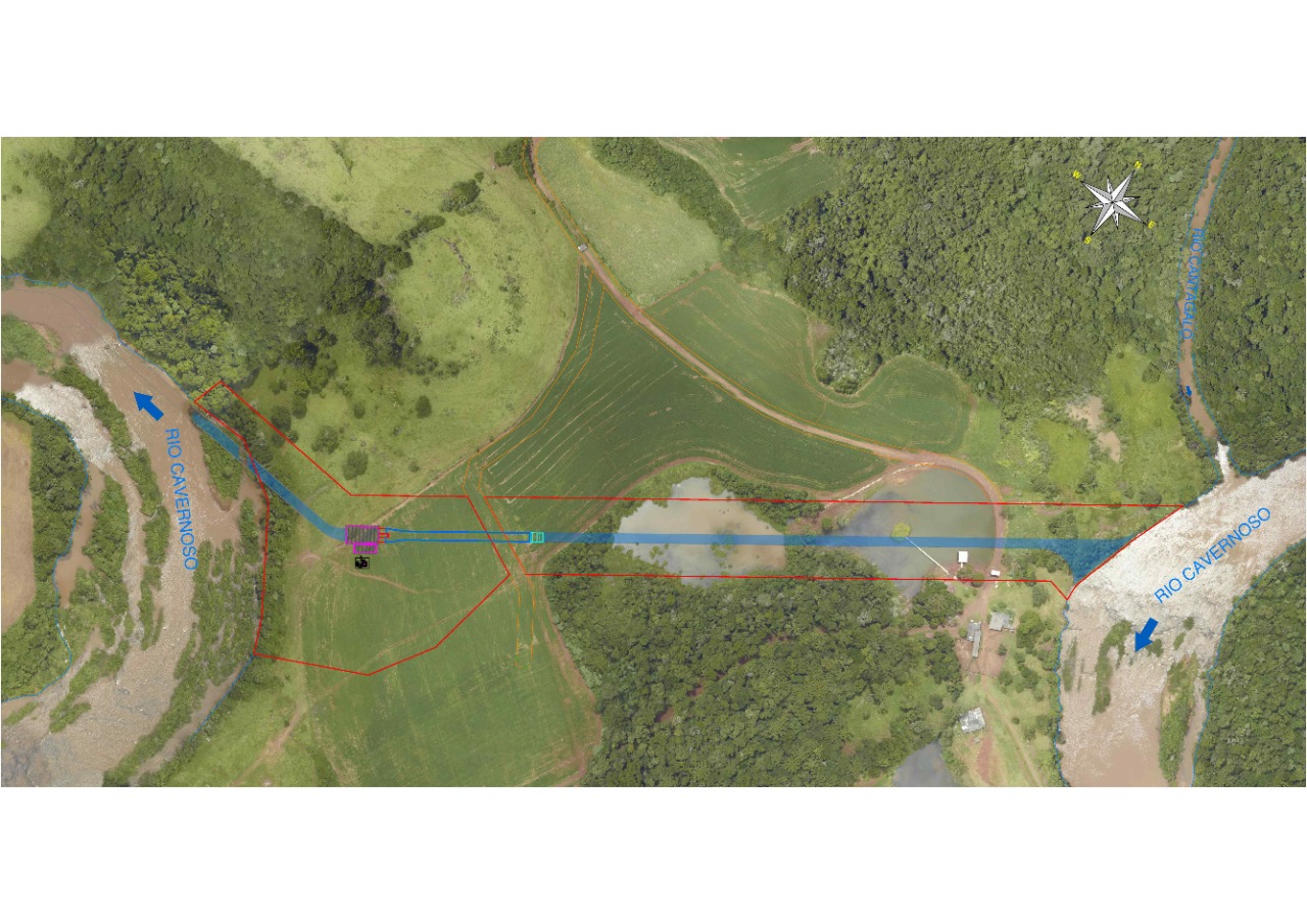 O projeto da usina possui 6,5MW de potência instalada e uma energia média de 3,54MW. Quando em operação, gerará energia limpa e renovável, aproveitando um desnível de aproximadamente 13,5m de altura em trecho do Rio Cavernoso.